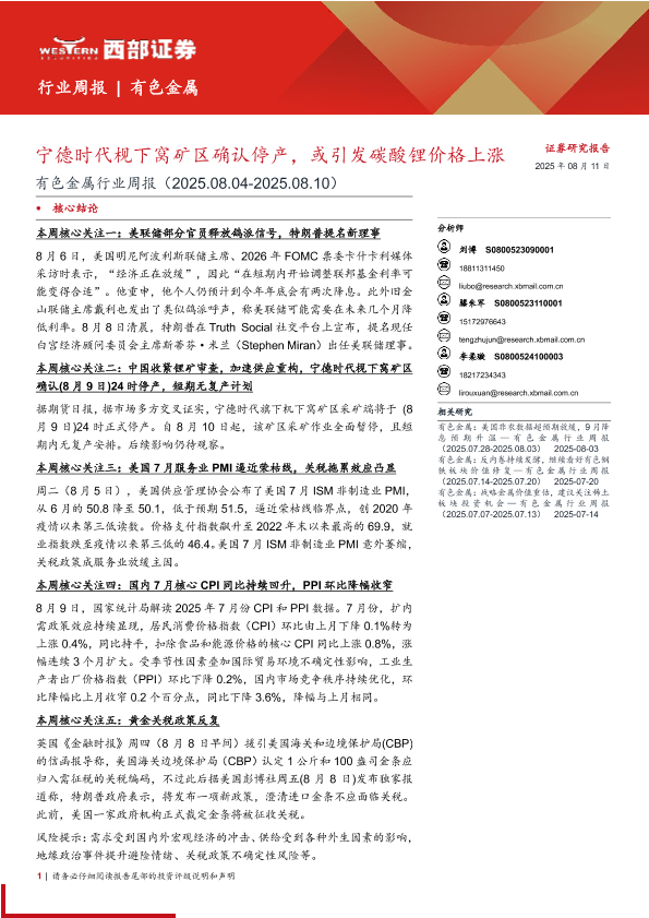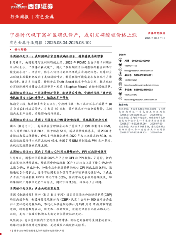 【西部证券】【20250811】宁德时代枧下窝矿区确认停产,或引发碳酸锂价格上涨-12页
