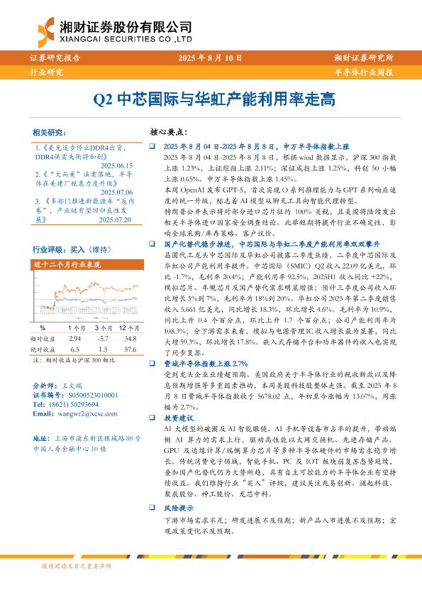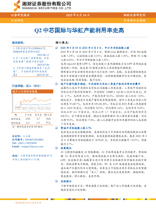 【湘财证券】【20250810】Q2中芯国际与华虹产能利用率走高-8页