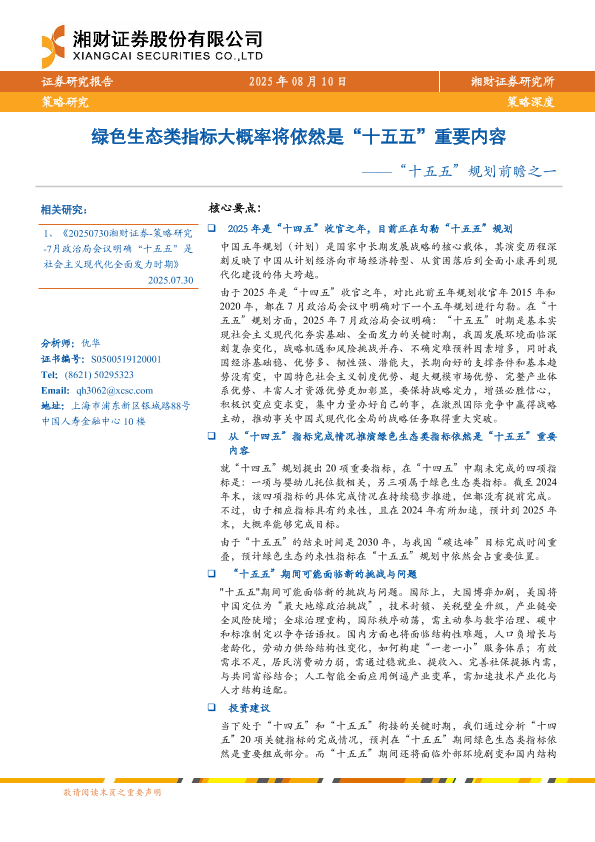 【湘财证券】【20250810】“十五五”规划前瞻之一:绿色生态类指标大概率将依然是“十五五”重要内容-25页