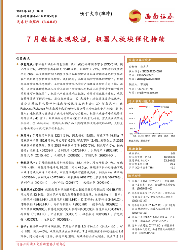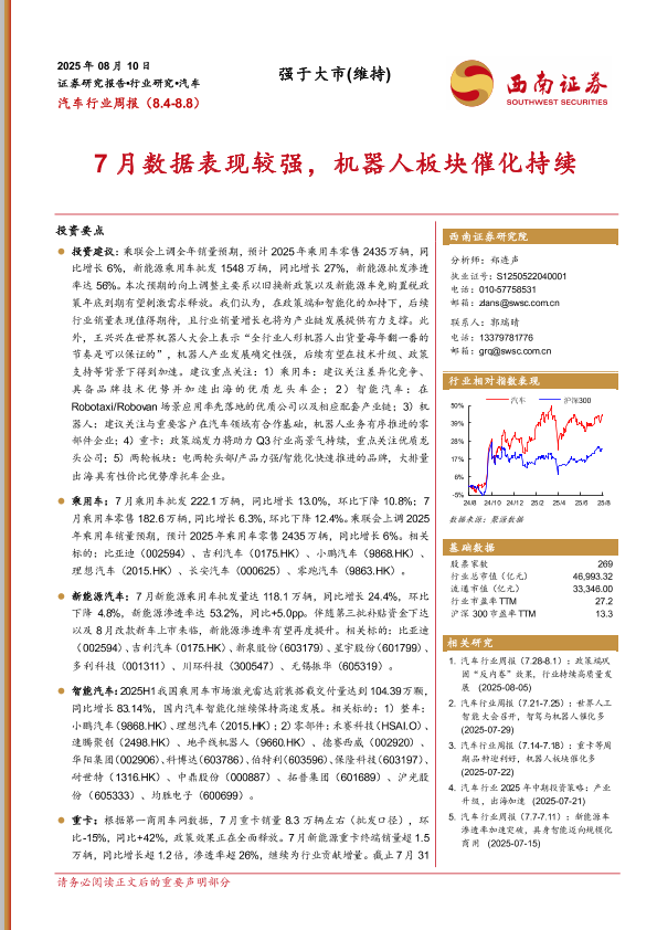 【西南证券】【20250810】汽车行业周报(8.4~8.8):7月数据表现较强,机器人板块催化持续-20页