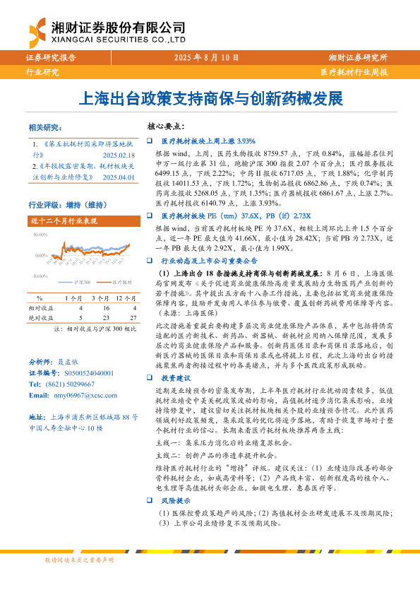 【湘财证券】【20250810】医疗耗材行业周报:上海出台政策支持商保与创新药械发展-6页