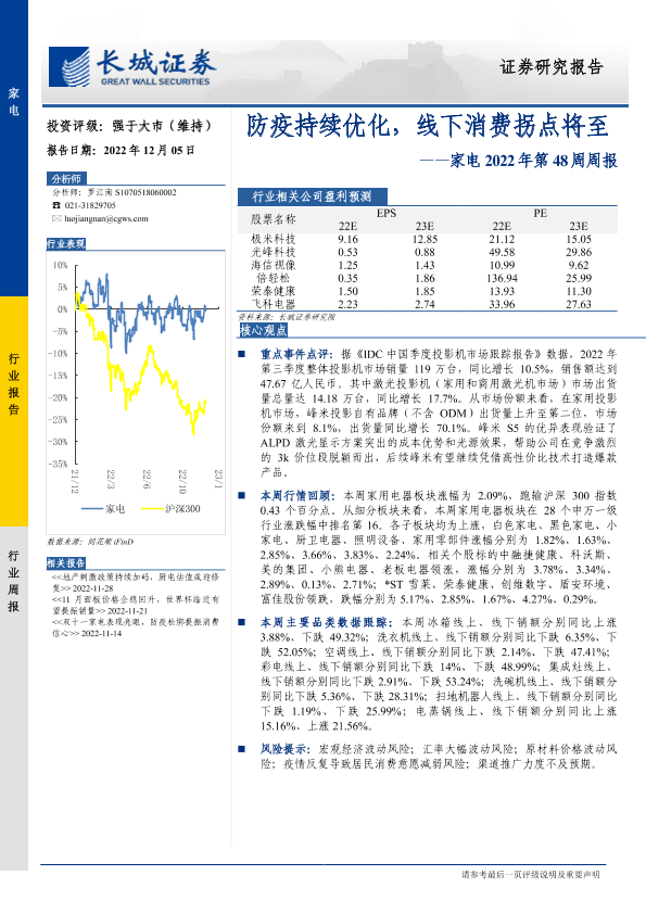 【长城证券】【20221205】家电行业2022年第48周周报:防疫持续优化,线下消费拐点将至-27页