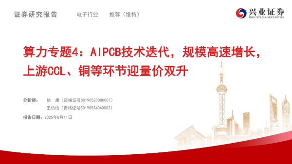 【兴业证券】【20250811】电子行业算力专题4:AIPCB技术迭代,规模高速增长,上游CCL、铜等环节迎量价双升-25页