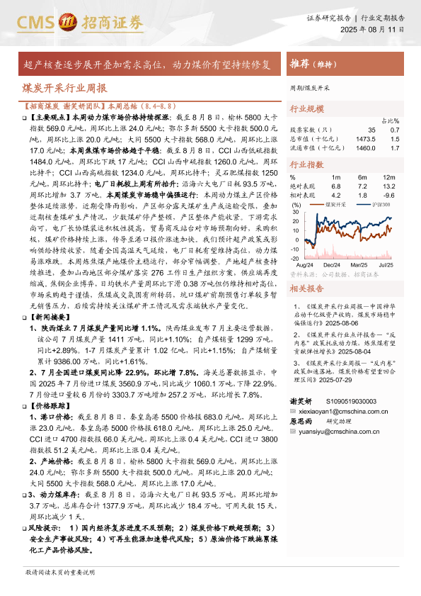【海通证券】【20250811】煤炭开采行业周报:超产核查逐步展开叠加需求高位,动力煤价有望持续修复-8页
