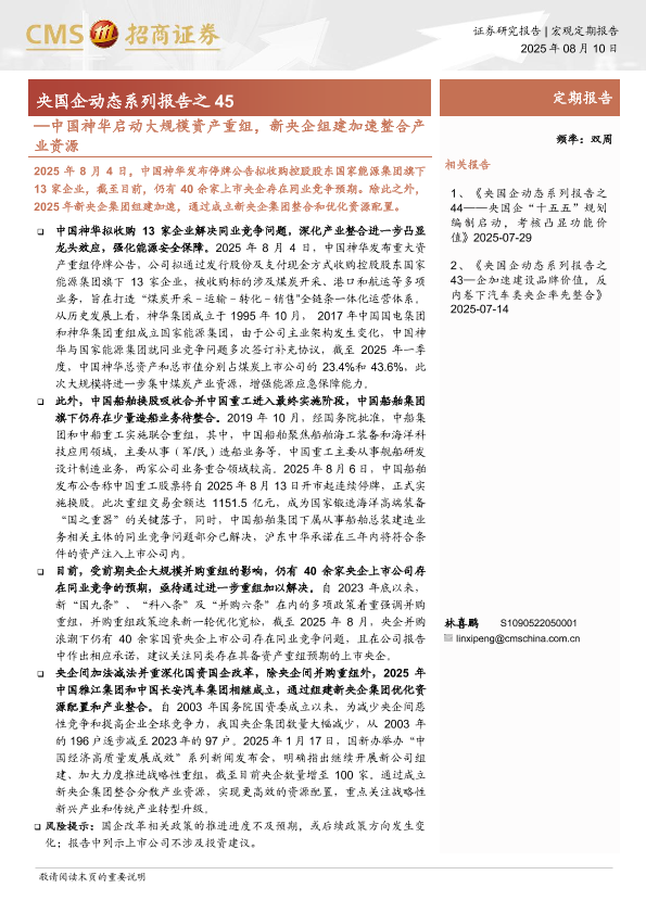 【海通证券】【20250810】央国企动态系列报告之45:中国神华启动大规模资产重组,新央企组建加速整合产业资源-31页