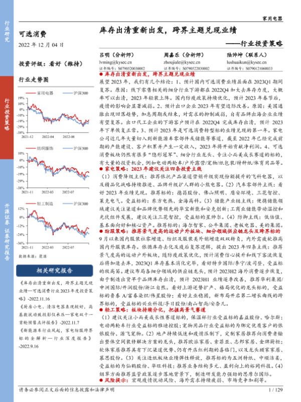 【开源证券】【20221204】家用电器行业投资策略:库存出清重新出发,跨界主题兑现业绩-129页