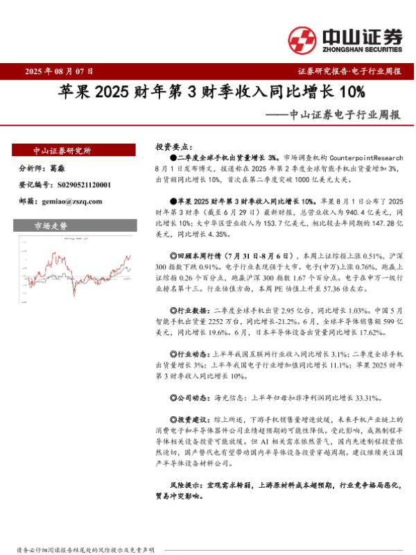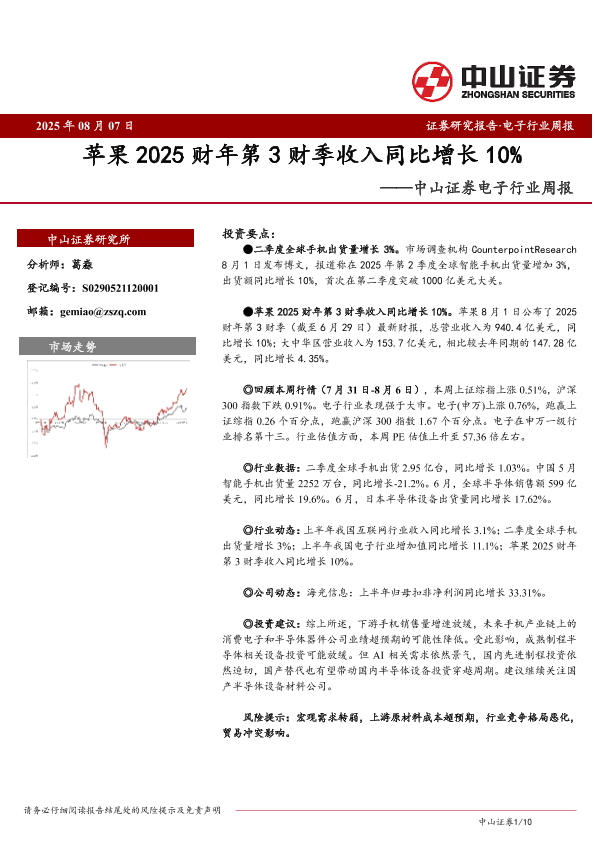 【中山证券】【20250807】苹果2025财年第3财季收入同比增长10%-10页