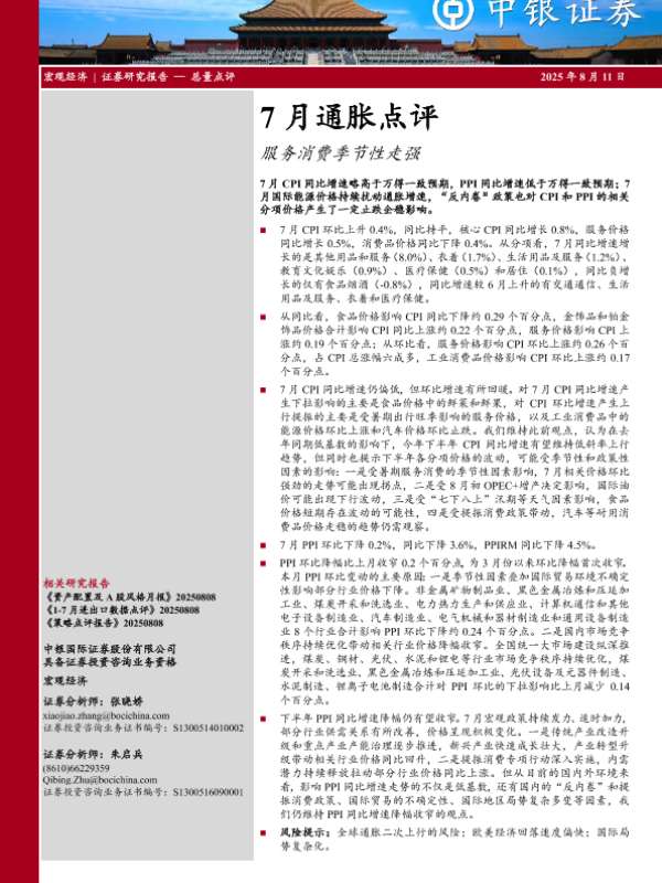 【中银证券】【20250811】7月通胀点评:服务消费季节性走强-7页