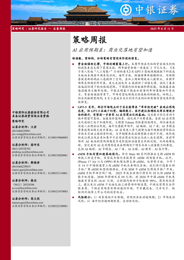 eSIM手机 AI应用 商业化落地 杠铃策略 科技成长