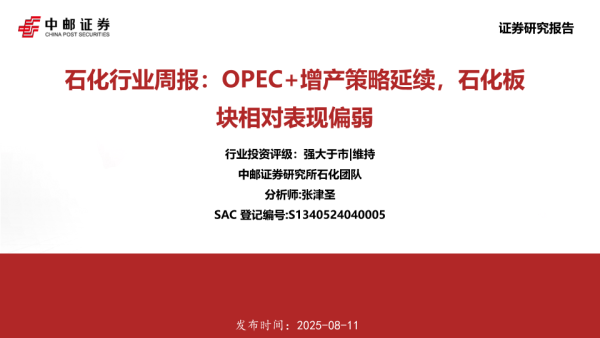 【中邮证券】【20250811】石化行业周报:OPEC+增产策略延续,石化板块相对表现偏弱-16页