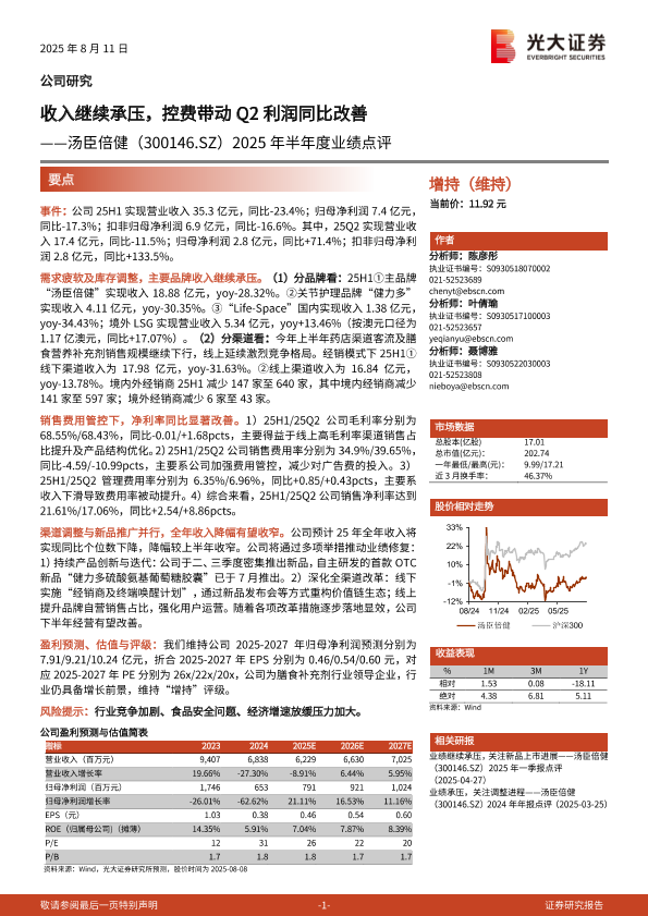 【光大证券】【20250811】2025年半年度业绩点评:收入继续承压,控费带动Q2利润同比改善-3页