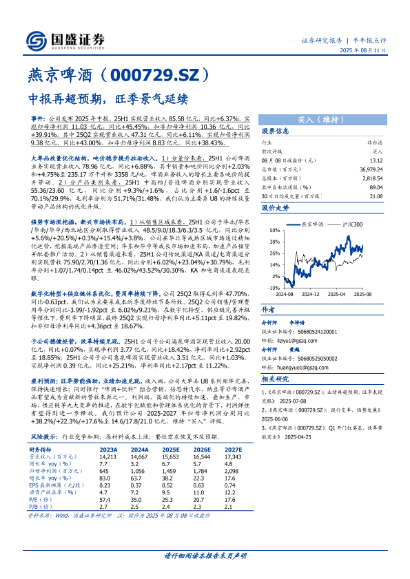 【国盛证券】【20250811】燕京啤酒-中报再超预期,旺季景气延续-3页