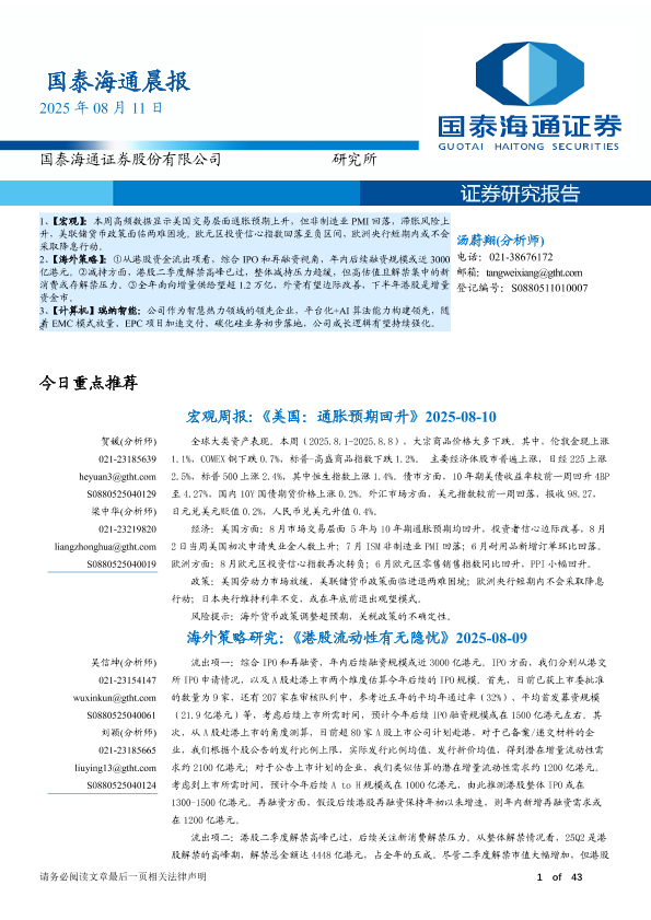 【国泰海通证券】【20250811】国泰海通晨报-43页