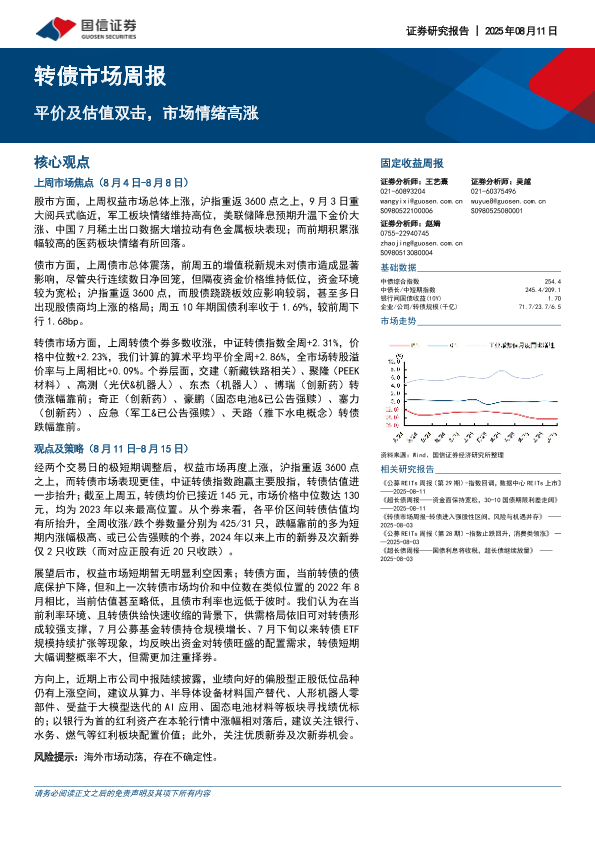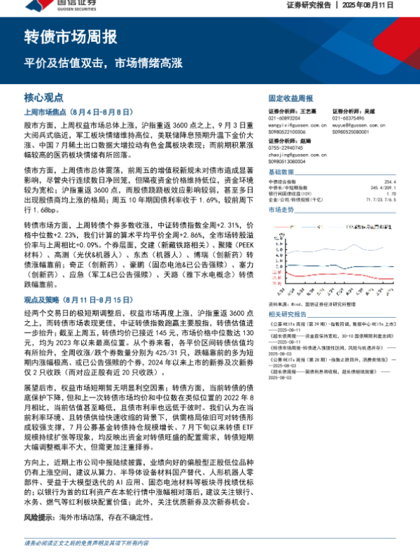 【国信证券】【20250811】转债市场周报:平价及估值双击,市场情绪高涨-10页