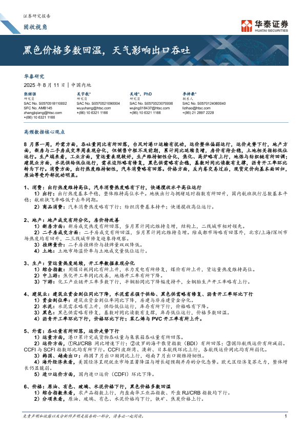 【华泰证券】【20250811】黑色价格多数回温,天气影响出口吞吐-14页