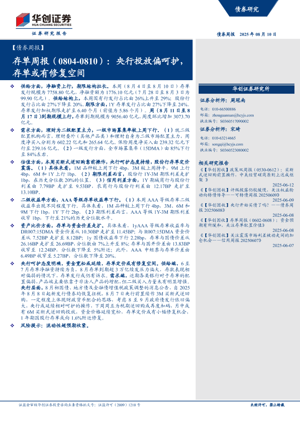 【华创证券】【20250810】存单周报(0804~0810):央行投放偏呵护,存单或有修复空间-14页