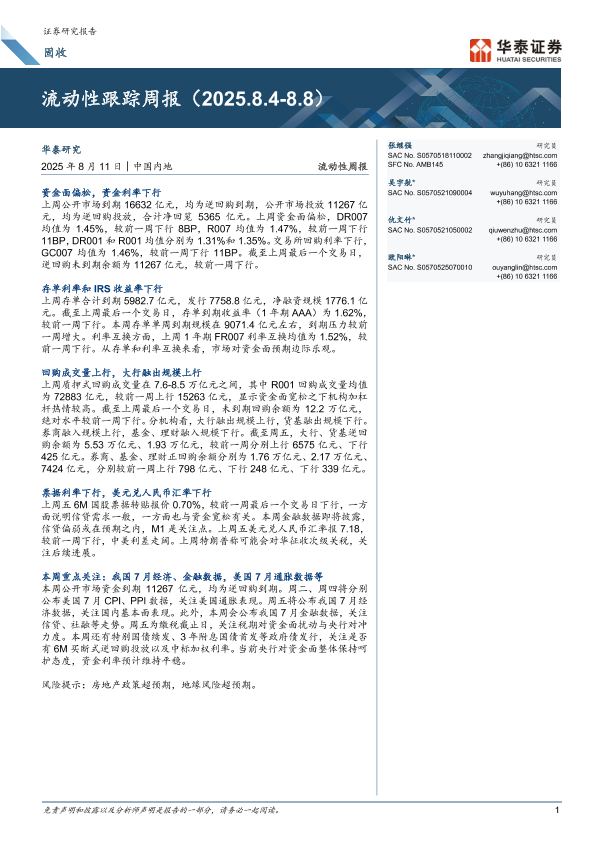 【华泰证券】【20250811】流动性跟踪周报(2025.8.4~8.8)-6页