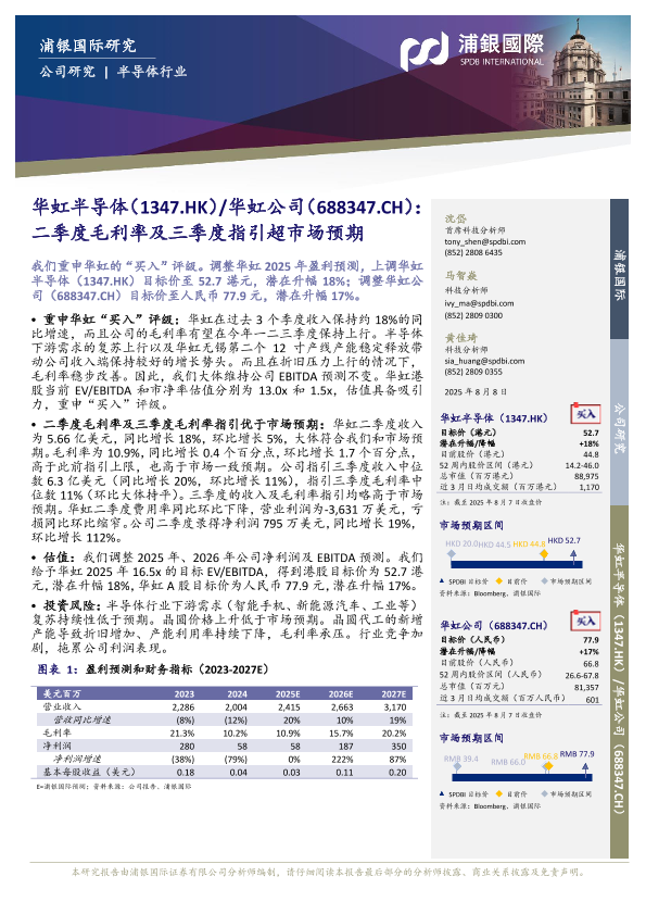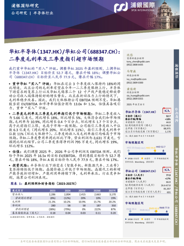 【浦银国际】【20250808】华虹公司二季度毛利率及三季度指引超市场预期-10页