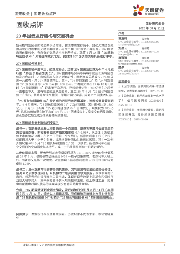 【天风证券】【20250811】20年国债发行结构与交易机会-5页