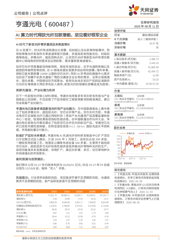 【天风证券】【20250811】AI算力时代释放光纤互联潜能,坚定看好领军企业-8页