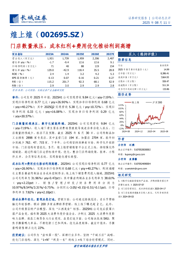 【长城证券】【20250811】门店数量承压,成本红利+费用优化推动利润高增-4页