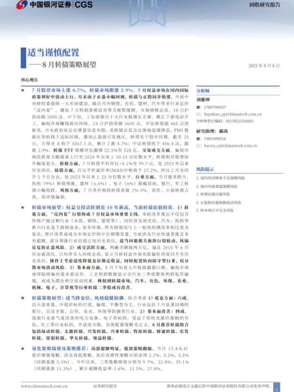 【银河证券】【20250808】8月转债策略展望:适当谨慎配置-20页