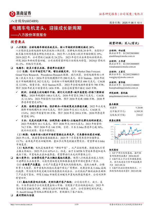 全球市场 电踏车电机 成长周期 八方股份 行业分析