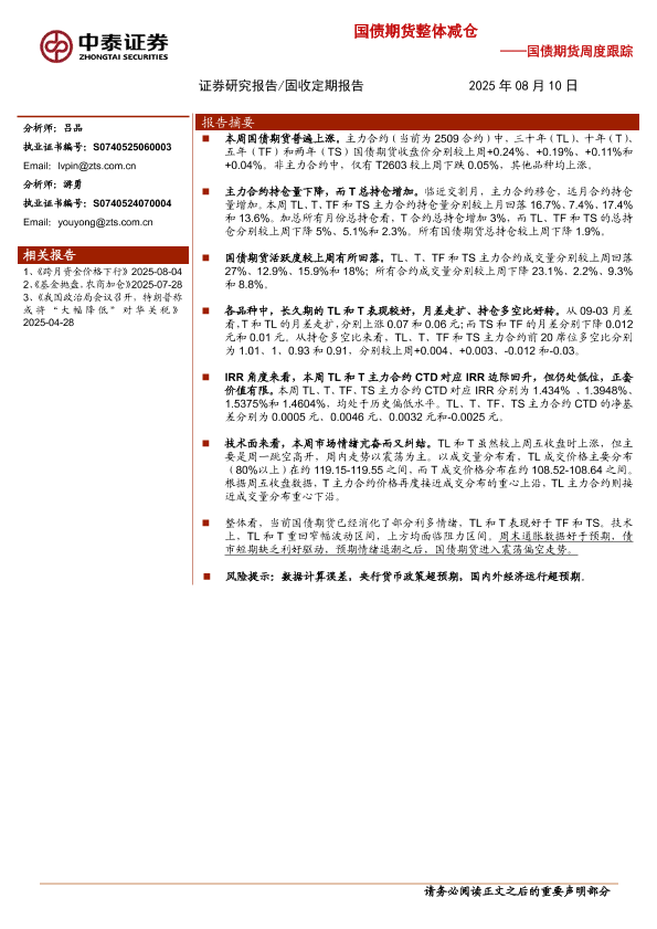 【中泰证券】【20250810】国债期货周度跟踪:国债期货整体减仓-9页