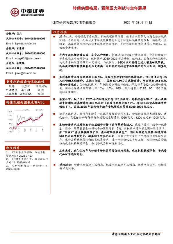 【中泰证券】【20250811】转债供需格局:强赎压力测试与全年展望-8页