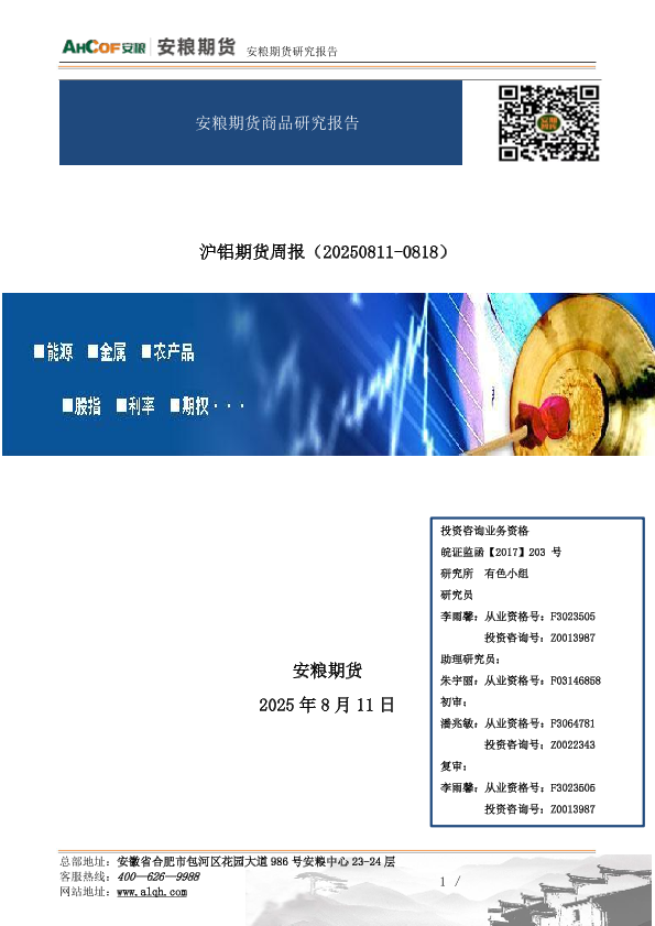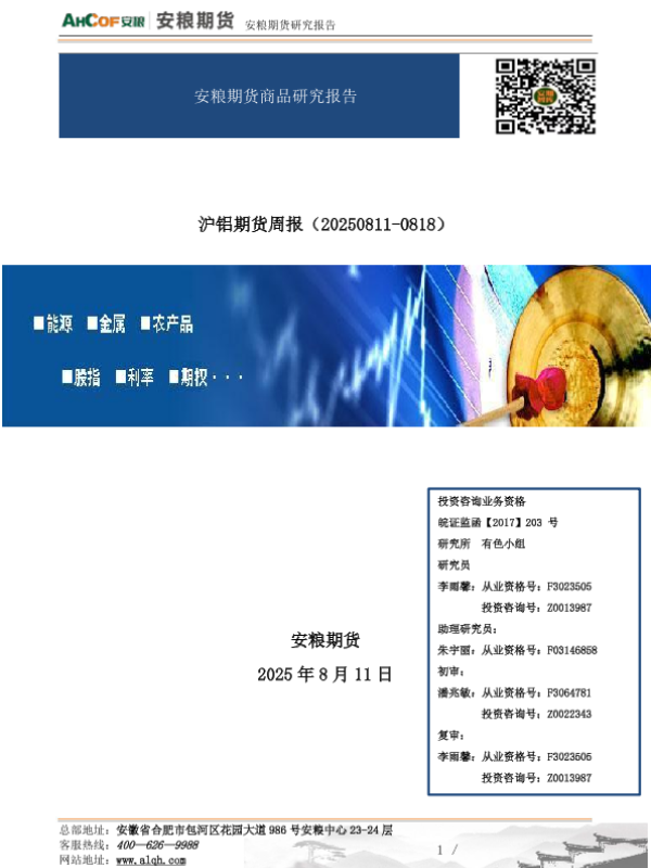 【安粮期货】【20250811】沪铝期货周报:综述,强现实弱预期博弈,铝价高位震荡-6页