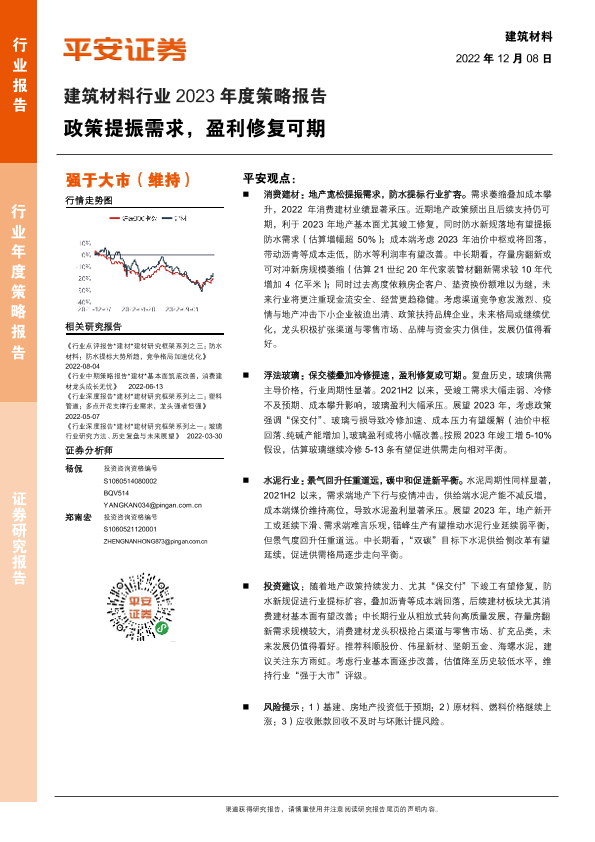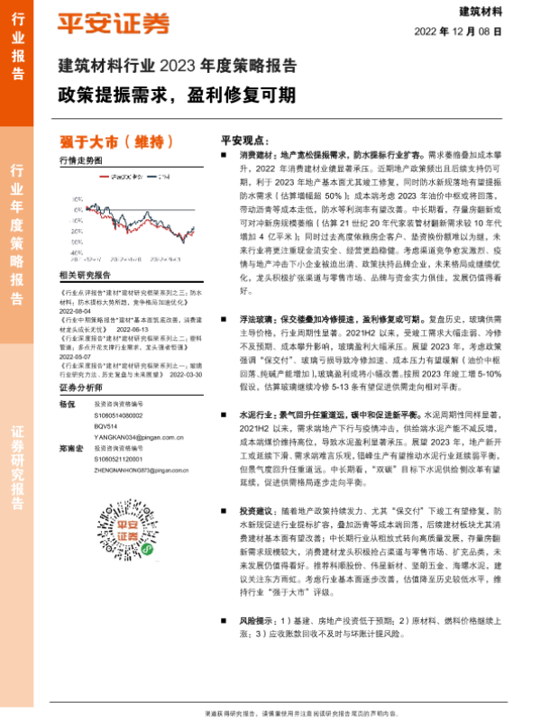【平安证券】【20221208】建筑材料行业2023年度策略报告:政策提振需求,盈利修复可期-27页