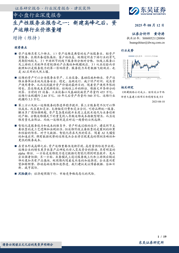 【东吴证券】【20250812】新建高峰之后,资产运维行业价涨量增-19页