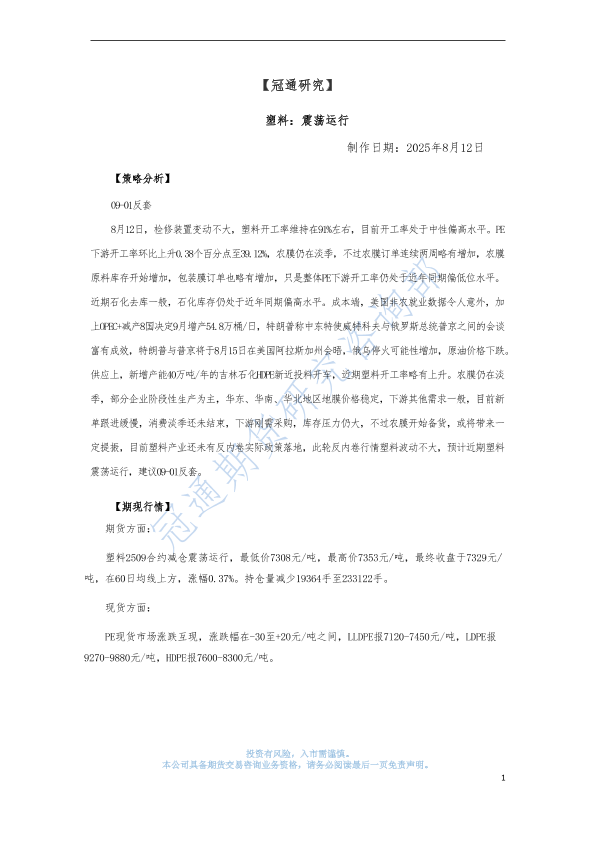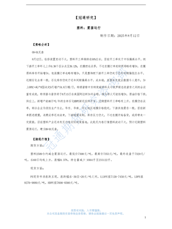 【冠通期货】【20250812】塑料:震荡运行-3页