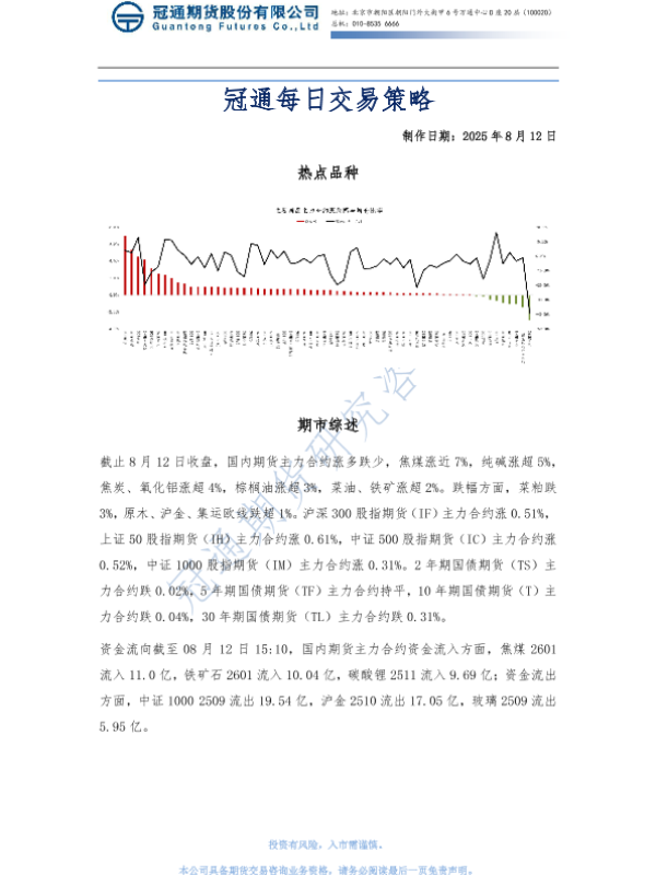 【冠通期货】【20250812】冠通每日交易策略-7页