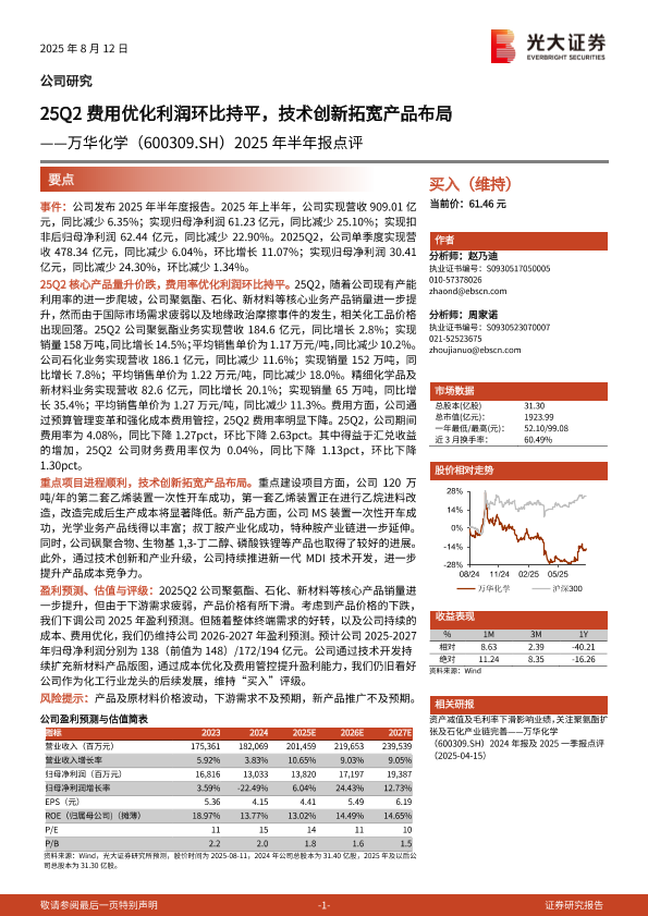 技术创新 财务分析 万华化学 产品布局 费用优化