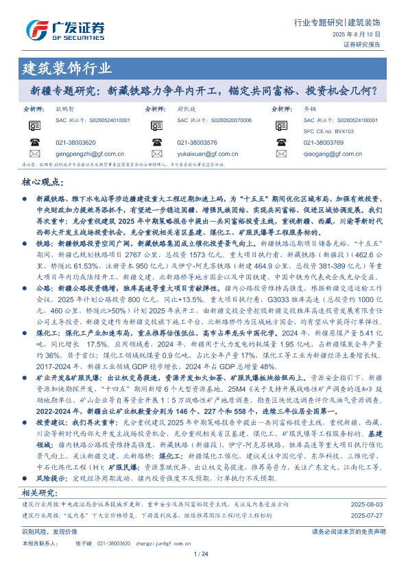 【广发证券】【20250810】建筑装饰行业新疆专题研究:新藏铁路力争年内开工,锚定共同富裕、投资机会几何?-24页