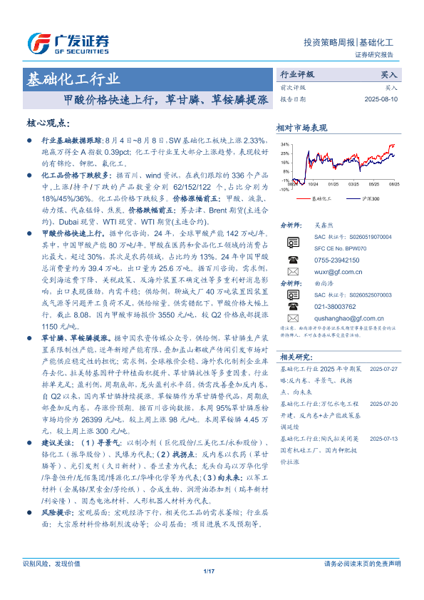 【广发证券】【20250810】基础化工行业:甲酸价格快速上行,草甘膦、草铵膦提涨-17页