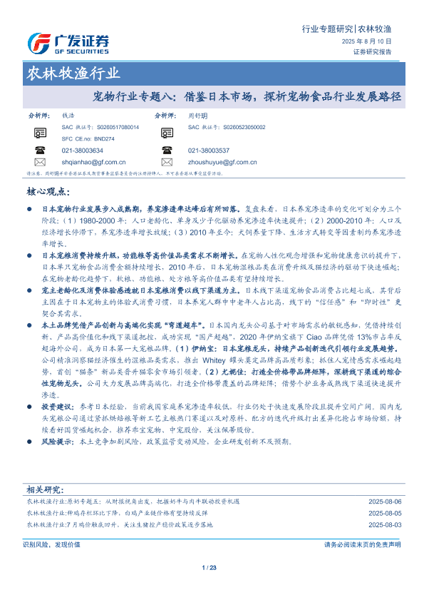 【广发证券】【20250810】宠物行业专题八:借鉴日本市场,探析宠物食品行业发展路径-23页