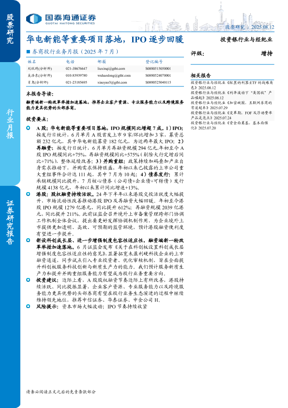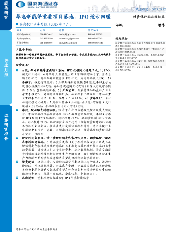 【国泰海通证券】【202507】投资银行业与经纪业行业券商投行业务月报-3页