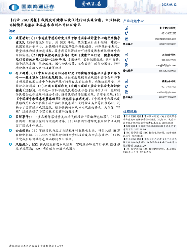 【国泰海通证券】【20250812】行业ESG周报-12页