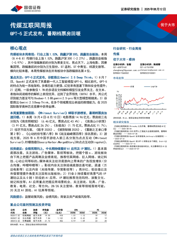 【国信证券】【20250812】传媒互联网行业周报:GPT-5正式发布,暑期档票房回暖-13页