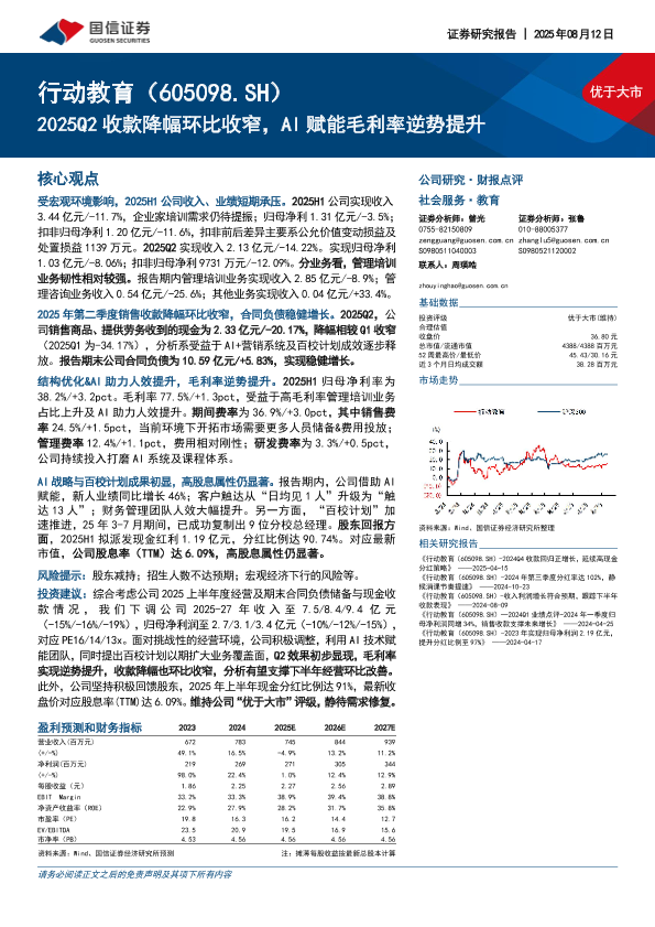 毛利率提升 高股息 AI赋能 行动教育 收款降幅收窄