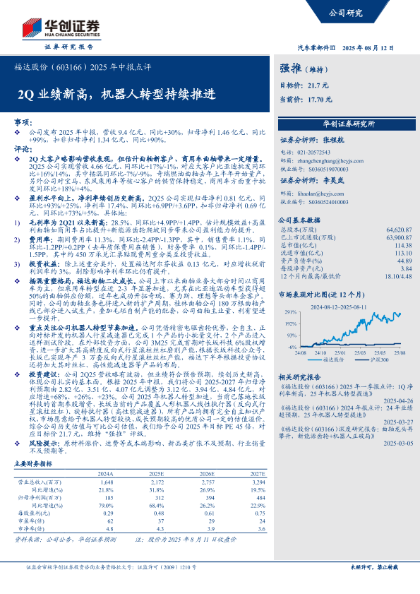 【华创证券】【20250812】2025年中报点评:2Q业绩新高,机器人转型持续推进-5页