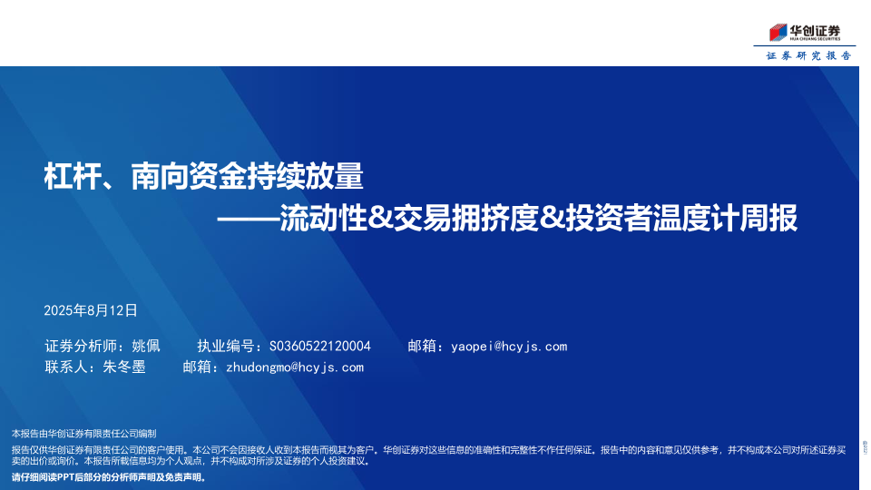 【华创证券】【20250812】流动性&交易拥挤度&投资者温度计周报:杠杆、南向资金持续放量-36页