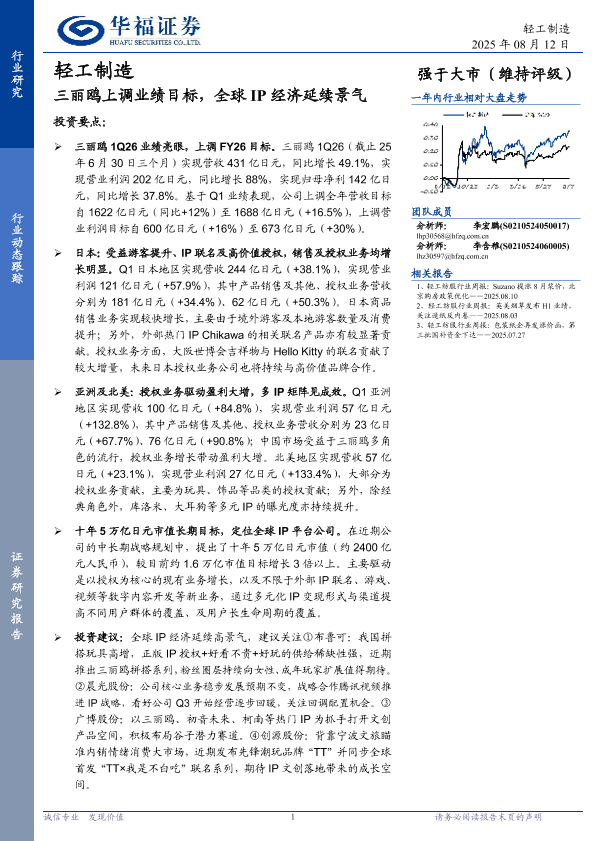 【华福证券】【20250812】轻工制造行业:三丽鸥上调业绩目标,全球IP经济延续景气-3页