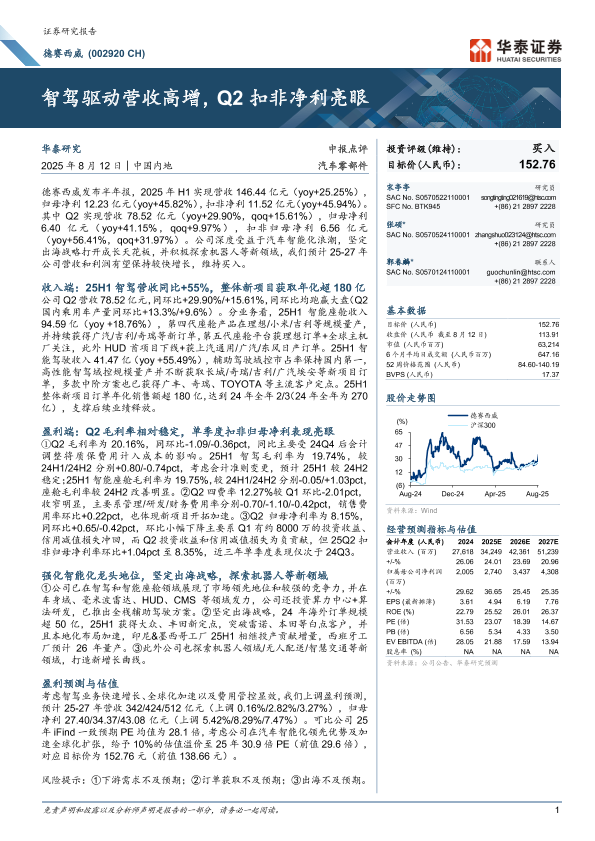 【华泰证券】【20250812】德赛西威智驾驱动营收高增,Q2扣非净利亮眼-6页