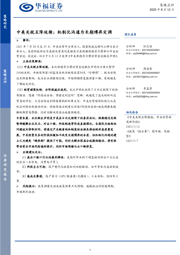 【华福证券】【20250812】中美关税互降延续:机制化沟通为长期博弈定调-6页