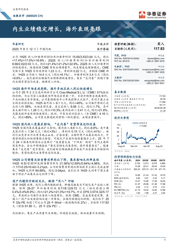 【华泰证券】【20250812】南微医学-内生业绩稳定增长,海外表现亮眼-6页