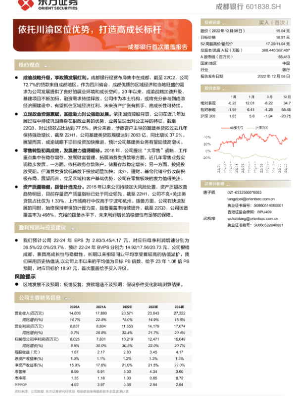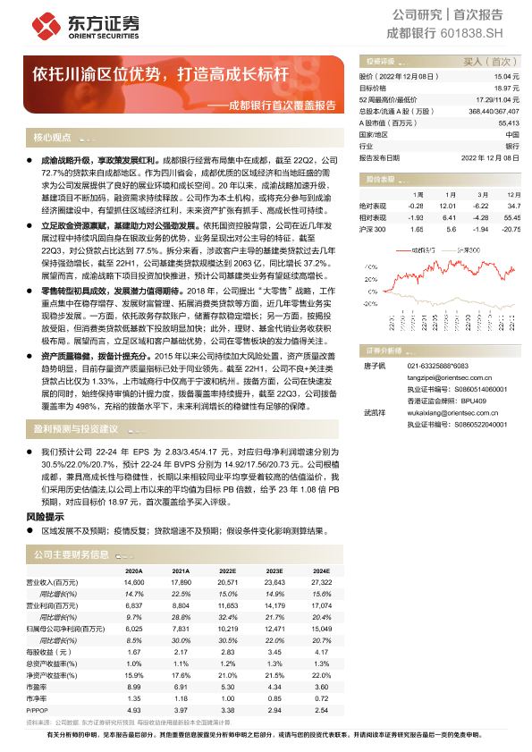 【东方证券】【20221208】成都银行首次覆盖报告:依托川渝区位优势,打造高成长标杆-30页