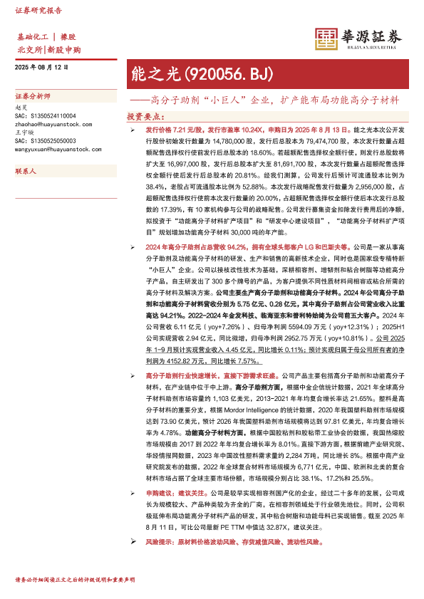 【华源证券】【20250812】能之光-高分子助剂“小巨人”企业,扩产能布局功能高分子材料-19页